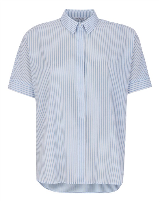 Allysia Skjorte - Soft Rebels Skøn stribet skjorte som findes i flere farverKorte ærmerKlassisk skjortekraveLukkes med skjult knappelukning Løs pasformModellen er 173 cm høj, og er iført en størrelse S.