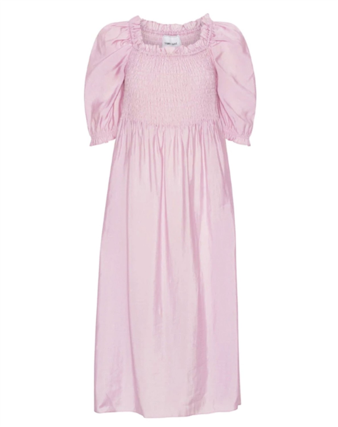 Callie Kjole - Dawn x DareSkøn lyserød kjole fra Dawn x Dare. Kjolen er med fine detaljer, som giver et feminint look. Den har smock henover brystet, flæsekanter samt puffet 3/4 ærmer. Den skær under knæet og falder smukt. Tilføj dine sandaler med en lille hæl fra Ivylee Copenhagen til Callie kjolen en aften ude.
