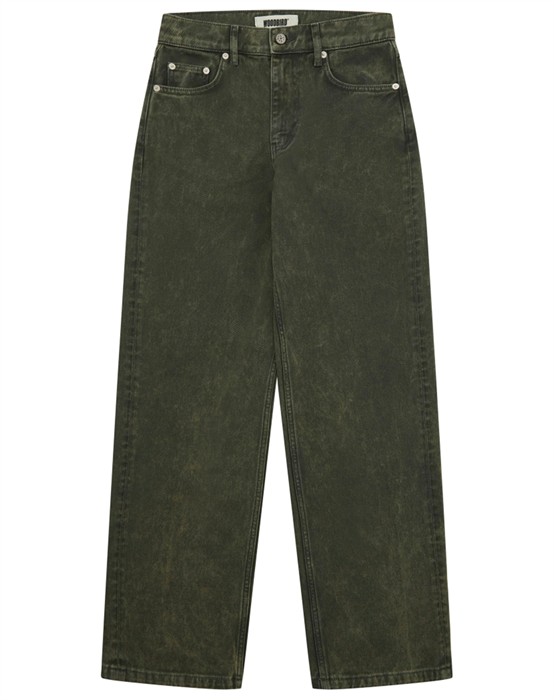 Carla Colour Jeans - Dark Green - WoodbirdDen populære Carla Jeans i en ny cool grøn vaskLoose Tapered fitLommer foran samt bagtilLynlåslukning