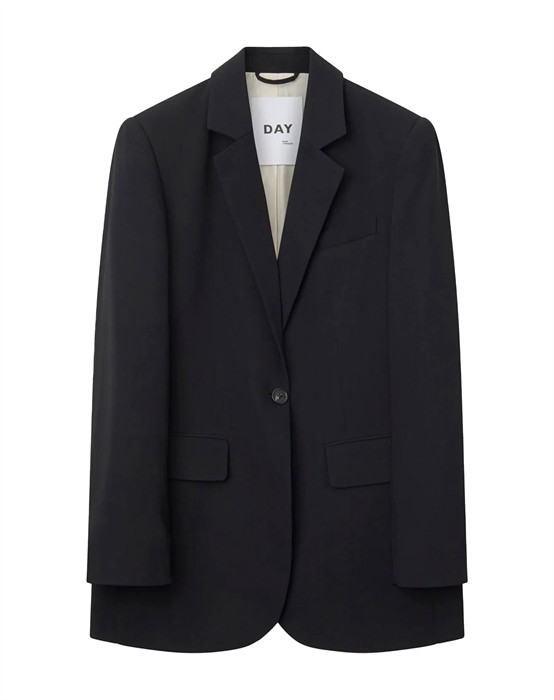Elton Classic Gabardina Blazer - Day Birger et MikkelsenEksklusiv sort blazer.Afslappet pasform. Enkel knap foran.Skulderpuder.Vi anbefaler, at du vælger et nummer mindre, hvis du svinger mellem to størrelser.En lækker sort blazer, er et must-have i din garderobe. Du kan style den hele året rundt og til alt. Flot til både jeans og bukser, samt kjoler og nederdele.