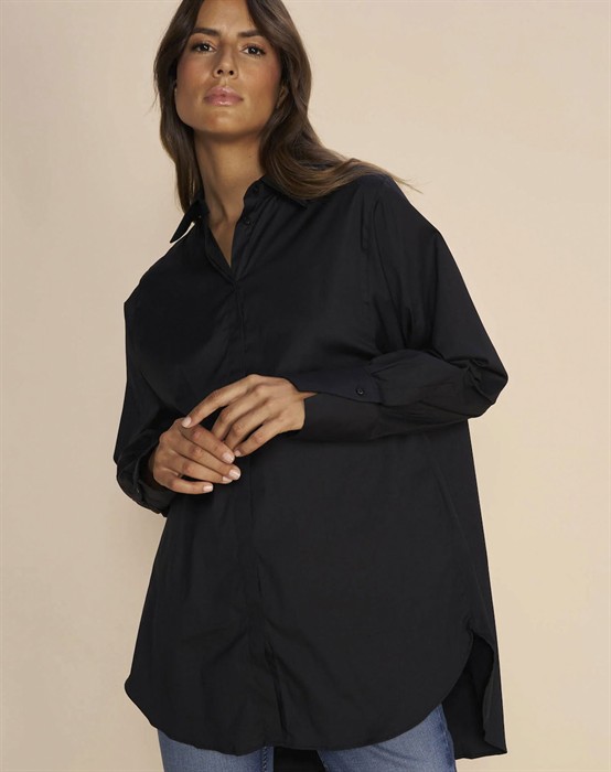 Enola skjorte blusen fra Mos Mosh pige er en populær del af brandets basis program. Ønsker du en skjorte, der altid er klædelig til både hverdag, reception, cafebesøg og meget andet, så er Enola skjorten lige noget for dig. Den har et lækkert og spændende snit med sit mere boxede design, der tilfører skjorten både volumen og længde. De skjulte knappelukninger gør ligeledes skjorteblusen mere elegant at se på. Er du én af dem, der elsker mere længde bagtil i dine skjorter, så er denne smarte skjorte også lige noget for dig. Enola skjorten findes i stilrene basis farver og kan styles til både smalle og brede pæne bukser, men er også super cool til jeans eller skind i alle pasform varianter.