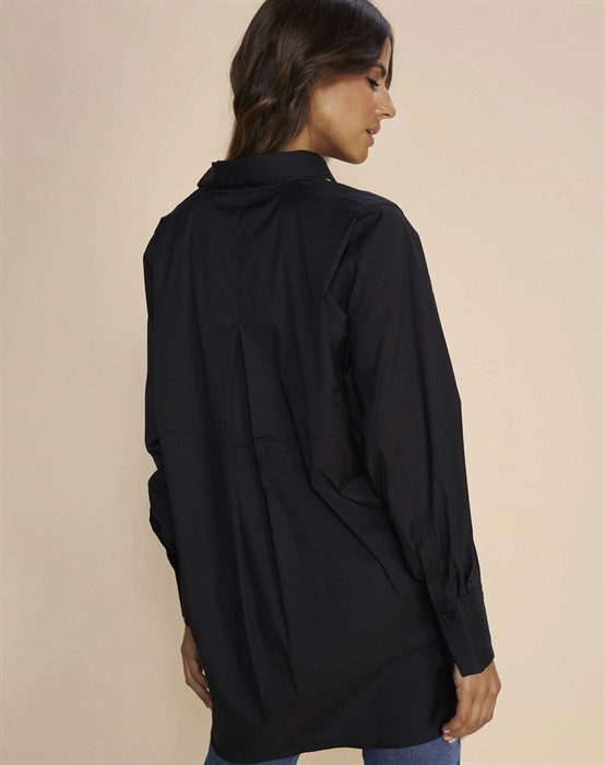 Enola Skjorte - Mos MoshSkøn skjorte med fine detaljer fra Mos MoshOversized pasform i skøn kvalitetGennem knappet med skjult knappelukningKlassisk krave samt fine detaljer på ryggenEnola skjorte blusen fra Mos Mosh pige er en populær del af brandets basis program. Ønsker du en skjorte, der altid er klædelig til både hverdag, reception, cafebesøg og meget andet, så er Enola skjorten lige noget for dig. Den har et lækkert og spændende snit med sit mere boxede design, der tilfører skjorten både volumen og længde. De skjulte knappelukninger gør ligeledes skjorteblusen mere elegant at se på. Er du én af dem, der elsker mere længde bagtil i dine skjorter, så er denne smarte skjorte også lige noget for dig. Enola skjorten findes i stilrene basis farver og kan styles til både smalle og brede pæne bukser, men er også super cool til jeans eller skind i alle pasform varianter.