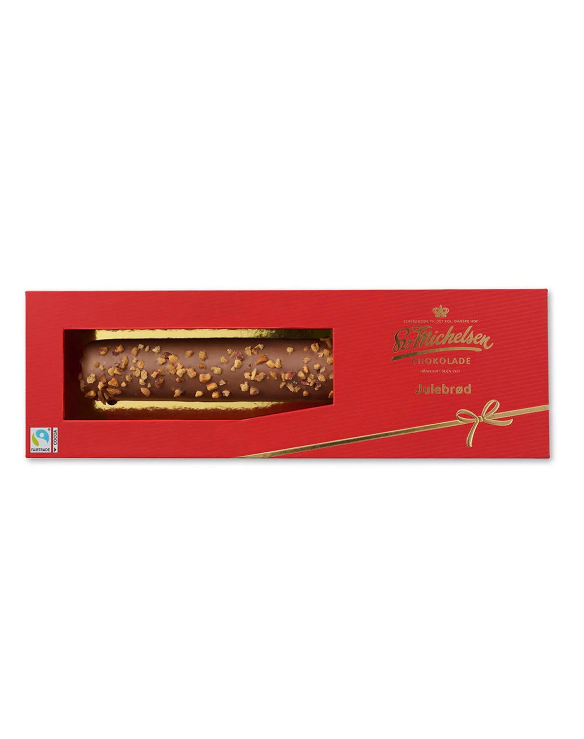 Lækkert julebrød fra Sv. Michelsen. Det velkendte julebrød er i denne variant med nougat og knasende krokant og overtrukket med delikat fairtrade chokolade. Julebrødet kommer i en fin juleæske og egen sig perfekt tl værtindegave eller kalendergave.
