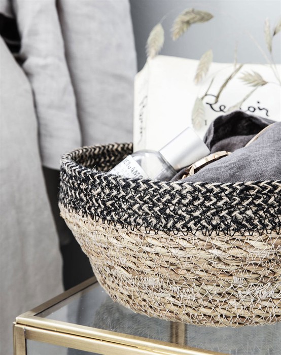 Kurv Bowl S - Black/Nature - House DoctorServer det friskbagte morgenbrød i den fine kurv, Bowl, fra House Doctor. Bowlkurvene findes i to forskellige størrelser og er ideelle til hverdagsbrug. Kurvene er lavet af søgræs og jute, der er med til at give et varmt og lækkert udtryk. Kurv Bowl S måler 6 x 16 cm. Brug kurven på bordet med de fine tallerkener og kopper fra Pionserien fra House Doctor, som kan opleves lige her.
