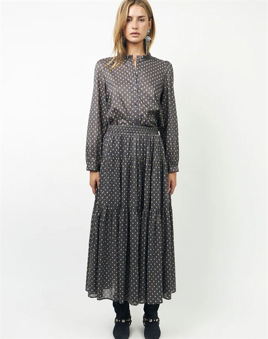 Sunset LL Maxi Nederdel fra Lollys Laundry er den ultimative nederdel til både hverdag og særlige anledninger. Det elegante snit og den mørkeblå nuance sikrer en stilfuld og afslappet look, der nemt kan styles op og ned efter behov.