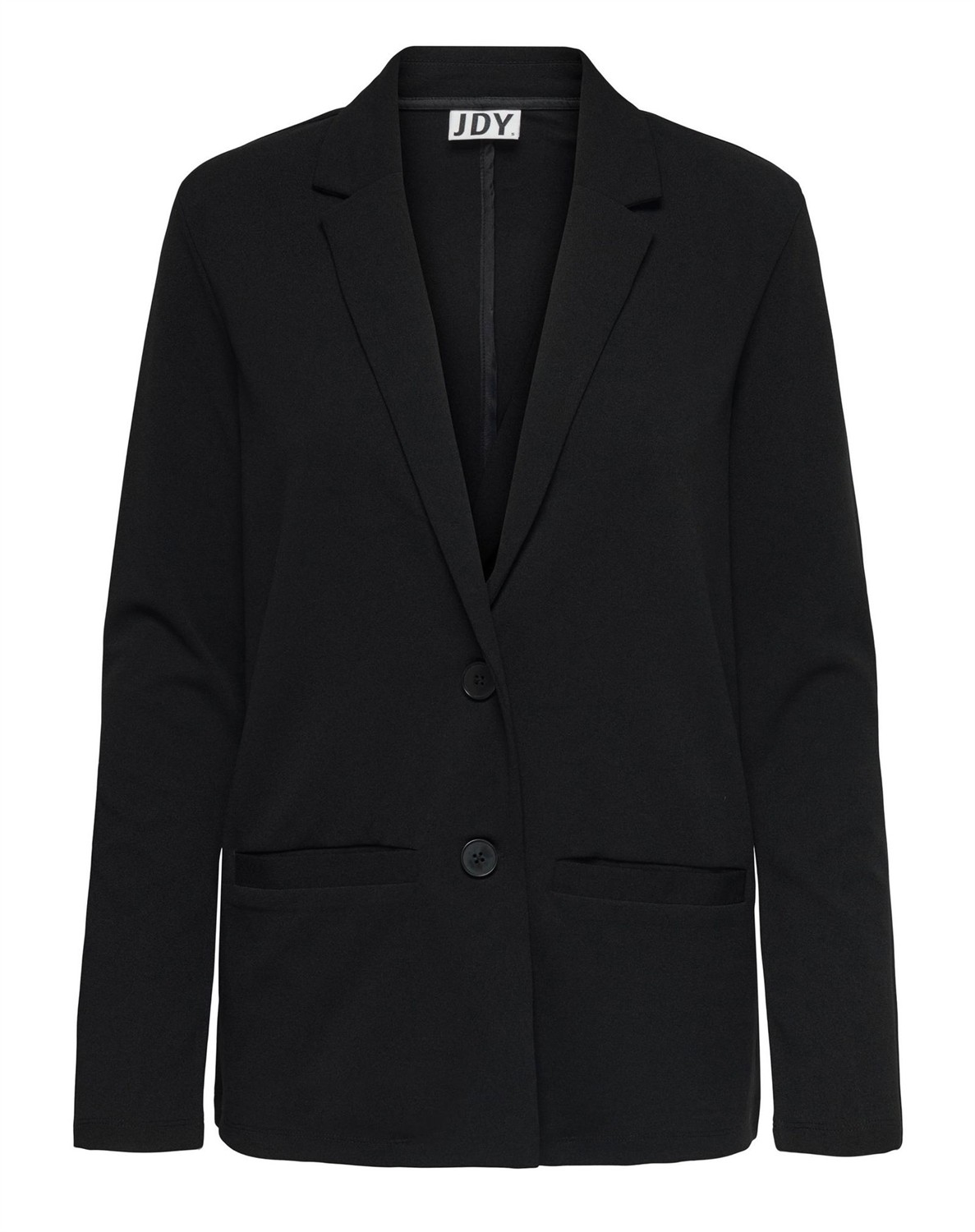 Skøn blazer i et enkelt og let design. Louisville Catia Blazeren er fra JDY og er lavet i et skønt strækbart materiale, der gør den super behagelig at bære dagen lang. Blazeren er designet med lange ærmer, en klassisk krave, frontlommer samt knappelukning med sorte knapper.