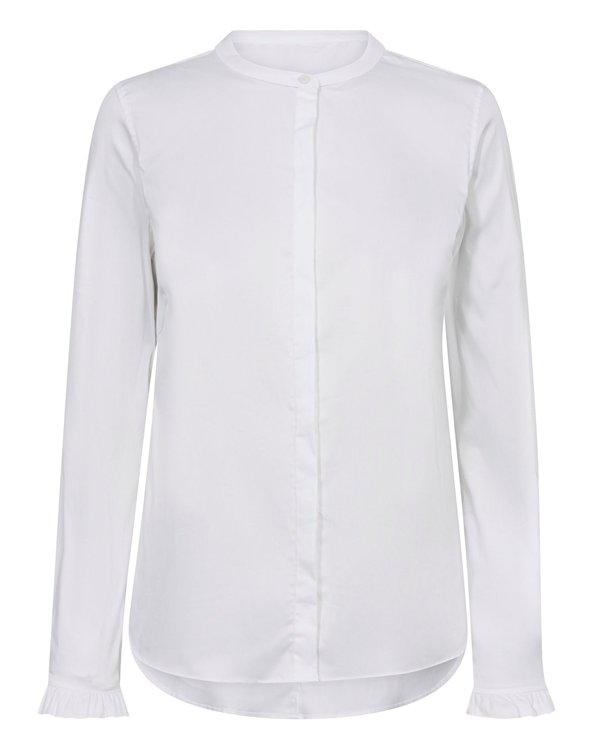 Mattie Skjorte - Mos MoshFin feminin skjorte fra Mos MoshFigursyet snit i skønt og behageligt materialeSkjult knappelukning og rund halsudskæringSmukke flæsedetaljer ved ærmekantenDenne smarte og feminine skjorte fra Mos Mosh damekollektion er perfekt til dig, der elsker at kombinere et klassisk look med et feminint strejf. Denne lækre skjorte i blød poplin kvalitet har smart kinakrave i halsen og flæser i ærmekanterne - begge dele detaljer, der gør skjorten både spændende og feminin. Så elsker du stilrent og klassiske designs på pigeskjorter, men helst vil undgå et decideret herrelook, så er Mattie skjorte fra Mos mosh dame lige noget for dig. Skjorten er samtidig blød og fleksibel, så den er rar at bære.