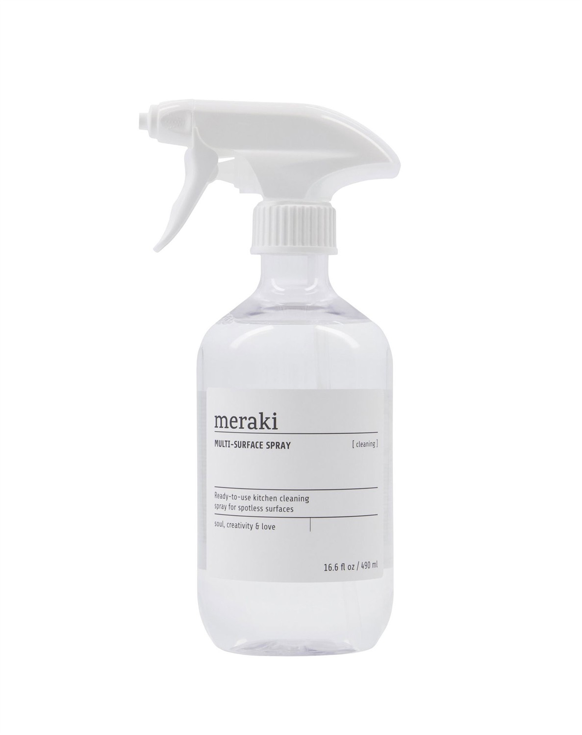 Multi-Surface Spray - Clear - MerakiSmart rengøringsspray fra MerakiSkøn duft med noter af blomster og citrusIndeholder 490 ml