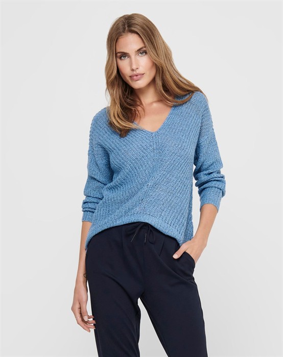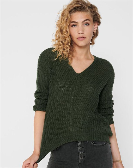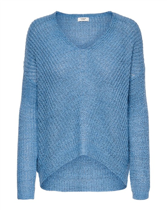 New Megan Striktrøje - Jacqueline de Yong Lækker striktrøje i et dejligt blødt materiale. Striktrøjen er fra Jacqueline de Yong og perfekt til hverdagsbrug. Den har lange ærmer, ribkant og en let v-udskæring. Bagtil går den længere ned end foran. Pasformen er normal, og er derfor størrelse tilsvarende Striktrøjen er perfekt at have i sin garderobe, og kan sammensættes med jeans fra Ivy Copenhagen Se hele vores skønne udvalg fra Jacqueline de Yong her
