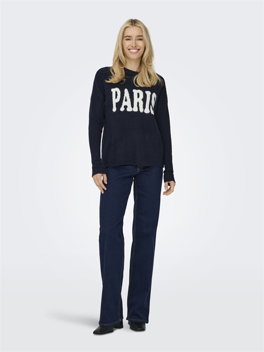 Only - ONLJerico L/S Pullover Strik • Hyggelig og stilfuld strik til hverdagsbrug.• Ideel til kølige dage med afslappet pasform.• Fremstillet i blødt og behageligt materiale.• Tidløst design med et flot Paris-logo. ONLJerico Pullover fra Only er den perfekte kombination af komfort og stil. Denne pullover er nem at style med både jeans og nederdele, hvilket gør den til et must-have i din garderobe. Tilføj et par trendy sneakers for at fuldende et afslappet, men stilfuldt look.