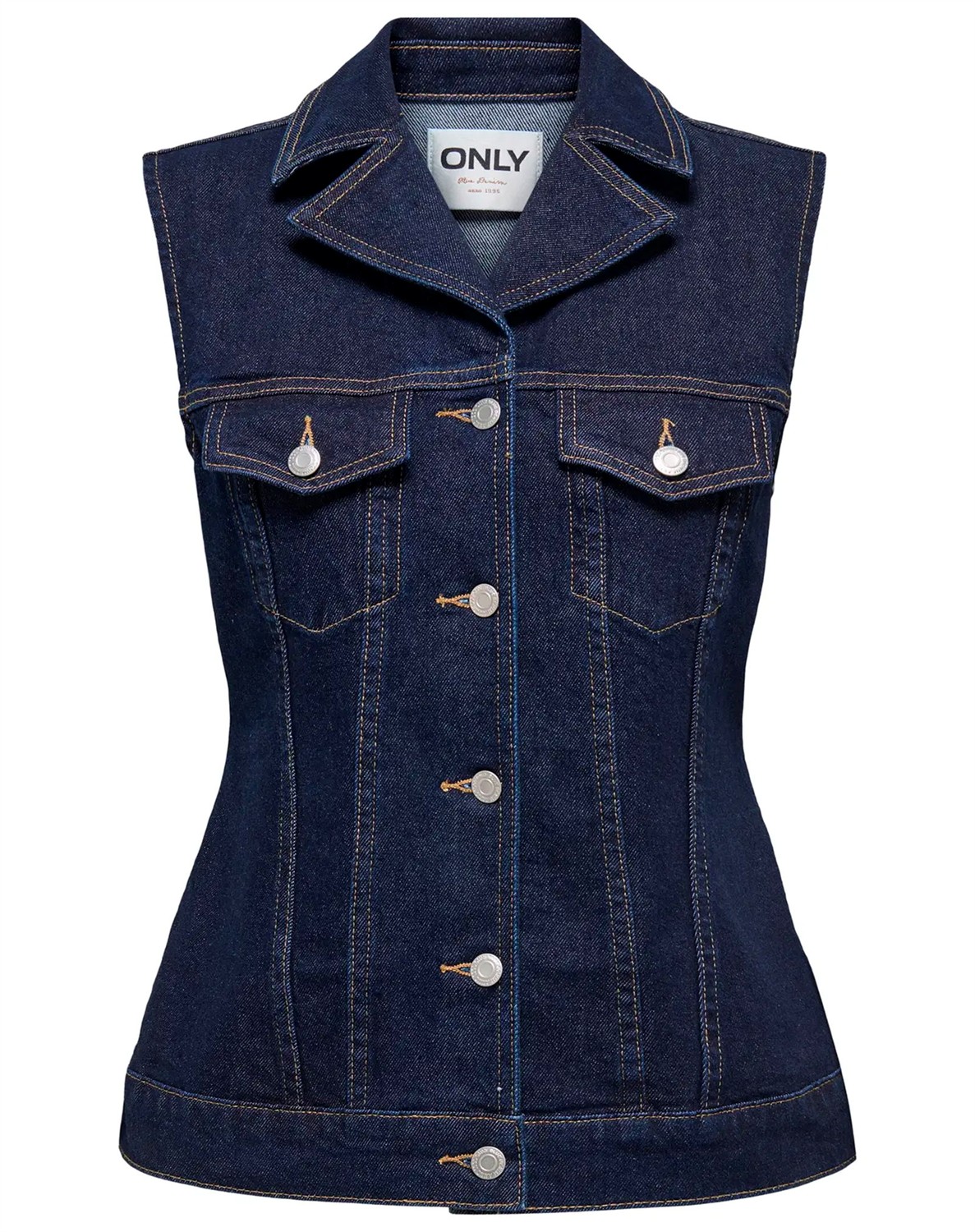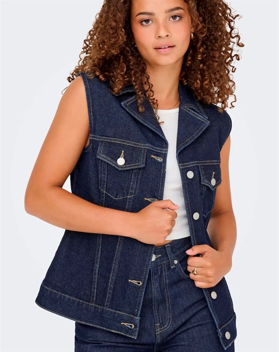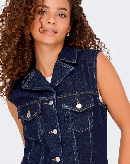 Only - OnlJoana Rinse Denim Vest - Dark Blue Denim
