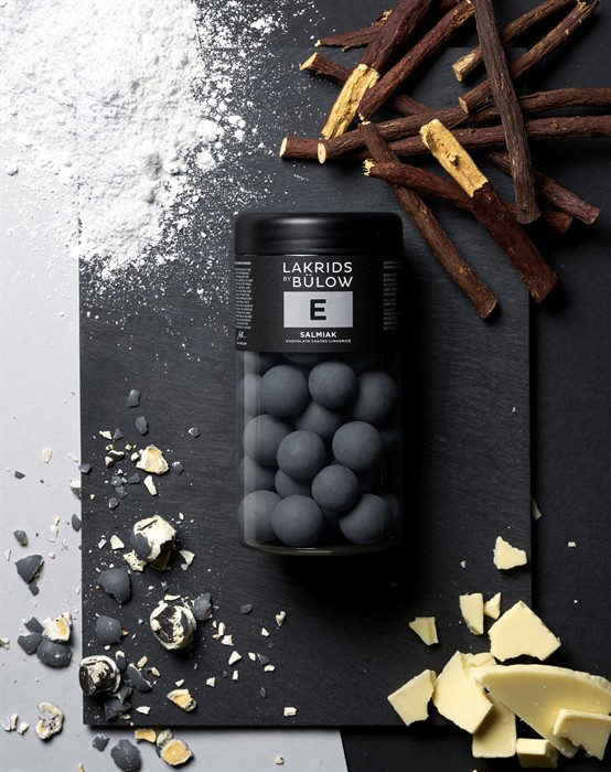 Lakrids by Johan Bülow er kendt for at lave de lækreste produkter om det er ren lakrids, chokolade eller en kombination af begge. Få en udsøgt smagsoplevelse med alle deres produkter. Regular E Salmiak er en kombination af salt lakridskerne overtrukket af hvid chokolade og med lakridspulver i chokoladen. Server denne lækre delikatesse til dine gæster eller når du bare har brug for lidt sødt. Se alle de lækre produkter fra Lakrids by Johan Bülow her.