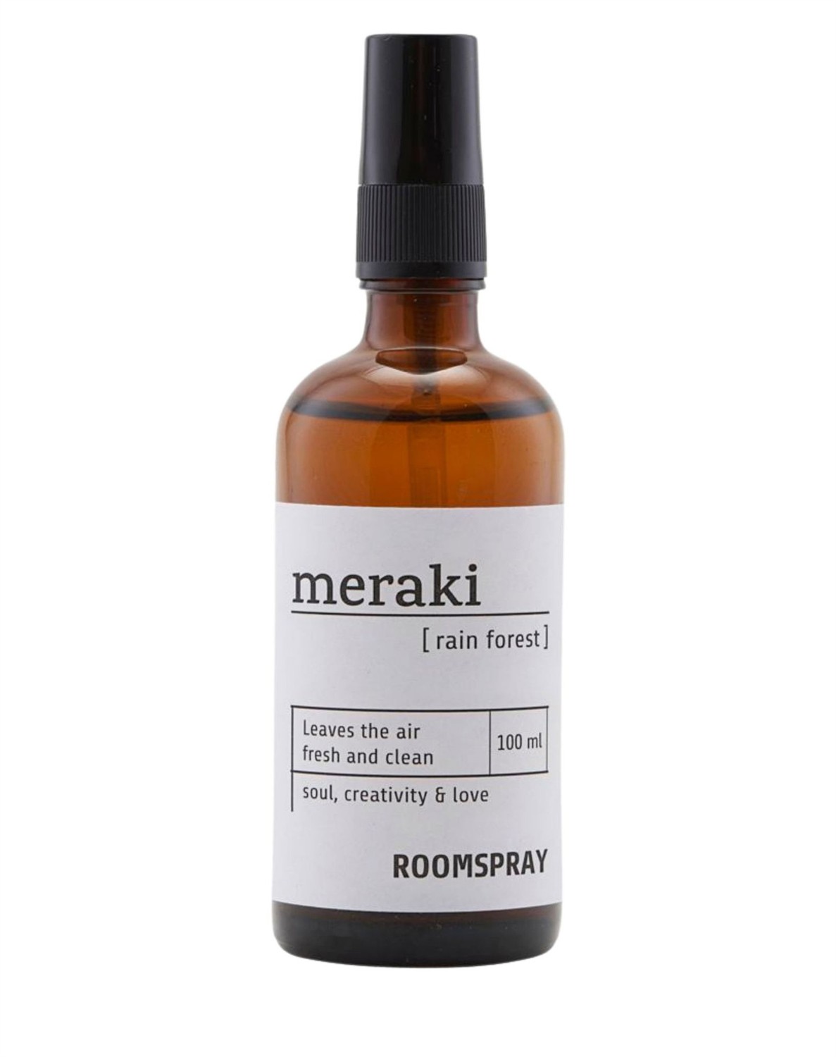 Roomspray - Rain Forest - MerakiSkab en frisk og ren atmosfære i dit hjem med denne Roomspray med duften Rain Forest fra Meraki. Roomsprayen kan bruges i alle rum. Brug blot et sprøjt eller to og nyd, hvordan den skønne duft spreder sig i rummet. Roomspray - Rain Forest kommer i en smuk flaske af 100 ml. Stil dem fremme på dit badeværelse eller andre rum og lad den være en del af indretningen. Oplev alle de lækre produkter fra Meraki lige her.