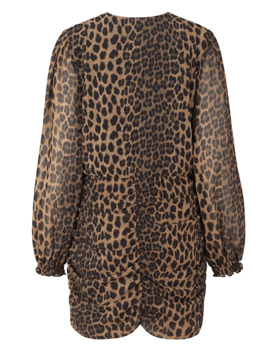 Rosecras Kjole - Cras CphSkøn leopard kjole, som passer perfekt til fest. Kjolen er fra bæredygtige Cras Cph og med mange skønne detaljer. Den er med v-udskæring, et snit i taljen, som giver en flot figur og rynke-detaljer nederst. Kjolen er med lange ærmer og skær midt på låret. Style Rosecras Kjolen til den næste fest med et par høje hæle eller støvler fra Sofie Schnoor. Tilføj din taske fra Marc Jacobs dertil. Oplev det altid spændende udvalg fra Cras Cph lige her.