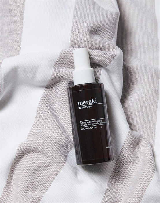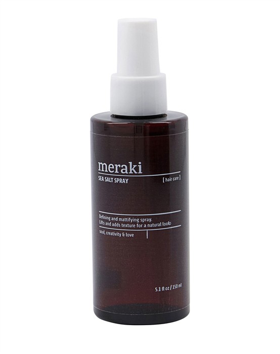 Saltvandsspray - MerakiLækker saltvandsspray fra altid skønne Meraki. Saltvandssprayen giver dit hår et løft, struktur og definerer det, så det får et lækkert look. Ikke nok med at den giver dit hår det lækre look, er saltvandssprayen fyldt med lækre ekstrakter som alger, havtorn og provitamin B5, der samtidig giver en masse pleje. Den har en diskret duft med noter af hvide blomster og frisk aqua. Spray den i fugtigt hår, style det og lad det tørre. For mere effekt og ekstra volumen, kan håret med fordel inddeles i sektioner og sprayes direkte ved rødderne og derefter føntørres. Find flere lækre produkter fra Meraki, du ikke vil gå glip af lie her.