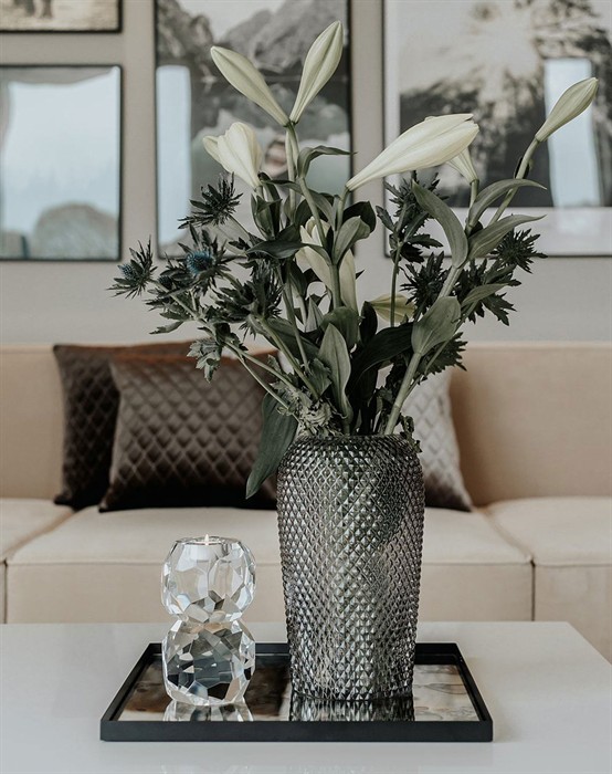 Silo Vase - Large - Light Grey - SpecktrumSmuk og enkel vase fra populære Specktrum, der skaber luksus alle har råd til med deres luksuriøse og unikke boligtilbehør. Silo Vasen er kendetegnet ved det moderne og unikke mønster, der er kombineret med den bløde og flotte form. Silo Vasen i large er med sin størrelse oplagt til både gulvvase og som et dekorativt element i indretningen. Brug vasen med blomster eller lad den shine og komme til sin ret i alt sin enkelthed. Silo Vasen Large måler 30 x 17 cm og findes både i large og medium i flere forskellige farver. Vasen er delvist håndlavet og der kan derfor forekomme variation i farve og finish. Oplev det store og ikke mindst smukke udvalg af både vaser og lysestager fra Specktrum lige her.