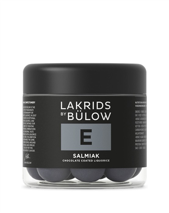 Small E Salmiak - Lakrids by Johan BülowLakrids by Johan Bülow er kendt for at lave de lækreste produkter om det er ren lakrids, chokolade eller en kombination af begge. Få en udsøgt smagsoplevelse med alle deres produkter. Small E Salmiak er en kombination af saltlakridskerne, hvidchokolade med lakridspulver. Server denne lækre delikatesse til dine gæster eller når du bare har brug for lidt sødt. Se alle de lækre produkter fra Lakrids by Johan Bülow her.