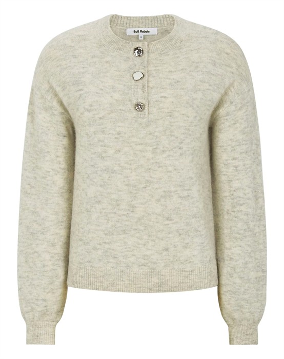 Soft Rebels - SRAllison Jewel Strik - Pumice Stone Melange • Feminin og afslappet strik. • Blød og delikat tekstur. • Ideel til lag-på-lag looks. • Flatterende pasform for enhver figur. • Perfekt til både hverdagsbrug og aftenen. Oplev den ultimative komfort og stil med SRAllison Jewel strikken fra Soft Rebels. Det unikke melange-look kombineret med en blød kvalitet gør denne strik til en garderobefavorit. Style den med alt fra jeans til en nederdel for et fuldendt outfit.