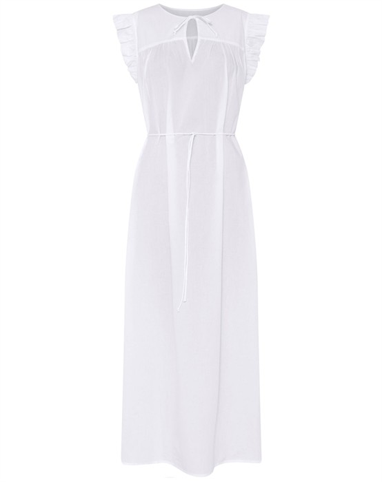 Stockholm Long Kjole - FrauSmuk vendbar kjole fra FrauFeminin flæse ved ærmekantAftageligt bindebåndLommer i siderneBrystmål: 112 cmLængde 128 cm