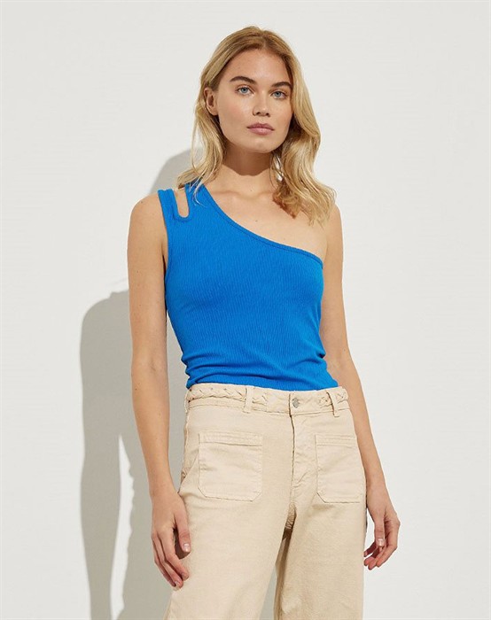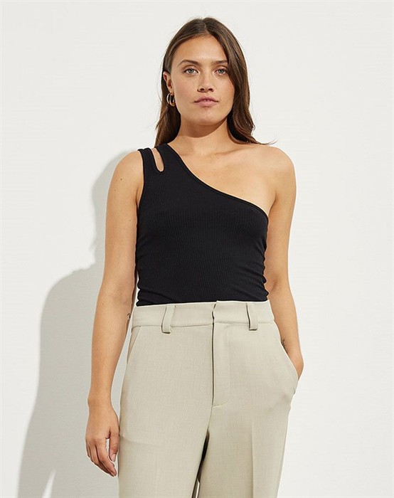 Suncia Top - mbyMCool one shoulder top fra mbyM. Flot top i rib med den fineste detalje ved den ene skulder. Toppen har et one shoulder look, som er en fed detalje til den, det gør toppen ret cool at bære. Den fåes i flere farver. Style Suncia toppen til et par short eller nederdel til de varmere dage. Eller til et par fede jeans fra Ivy Copenhagen til en aften ude kan du hertil smide en flot blazer over. Oplev universet fra mbyM her.