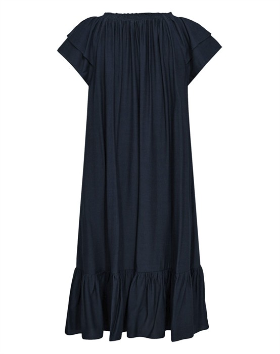 Sunrise Cropped Kjole - Co' CoutureDenne skønne Sunrise kjole fra Co’Couture er tilbage i nye skønne farver, og selvfølgelig også i dem vi kender. Kjolen har fine feminine detaljer med flæseærmer, en bred flæsekant nederst samt elastik, der rynker i halsen. I siderne har kjolen skjulte lommer. Kjolen falder tungt og elegant, og så er den skåret lige under knæet. Med Sunrise Cropped Kjole får du den helt rigtig sommerkjole. Du kan style den afslappet/sporty med et par sneakers fra ARKK Copenhagen. Eller super feminint med et par sandaler fra Billi Bi.