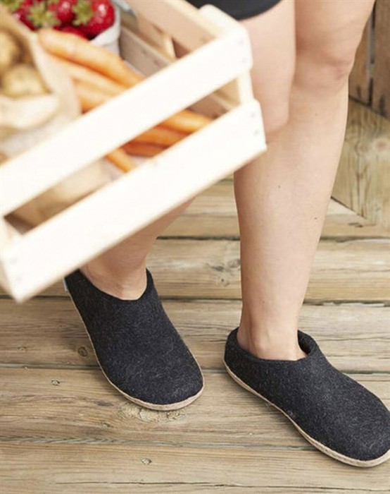 Tøffel - Koks - Glerups Skønne unisex tøfler i lækker filtet uldkvalitet fra ikoniske Glerups. Tøflen har et åbent og stilrent design, som gør dem lette at hoppe i. Futskoen har en lædersål af kalveskind, som sikrer at skoen står fast og giver fødderne den bedste komfort. Den lækre uldkvalitet sikrer varme og tørre fødder, året rundt. Perfekte hjemmesko i flot koksgrå farve, som er et absolut must-have i enhver garderobe.