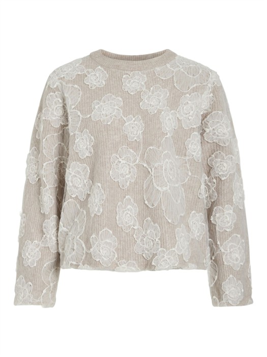 VIHayden O-Neck Embroidery Strik - Natural Melange - Vila