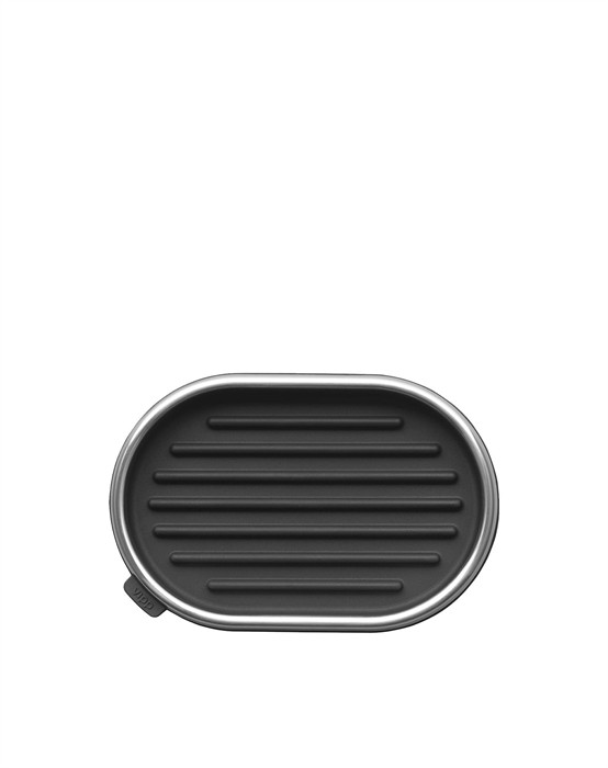 Vipp5 Sæbeskål fra Vipp Sæbeskål i stilfuldt skandinavisk design fra VIPP i flot sort farve. Sæbeskålen har en silikonebase som beskytter overflader, en rillet indsats som holder sæben tør samt dele der let kan skilles ad og rengøres eller gå i opvaskemaskinen. En let løsning til opbevaring af sæbe på enten badeværelset eller køkkenet. Indretning den alene på badeværelset eller sammen med Vipp7 tandbørstekruset