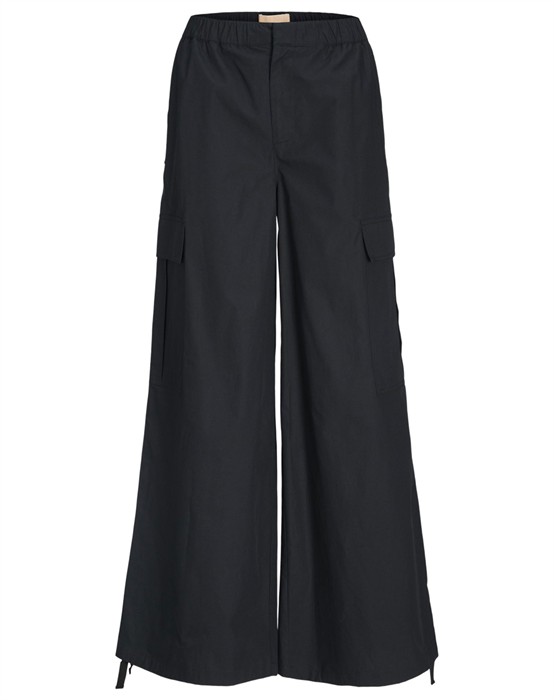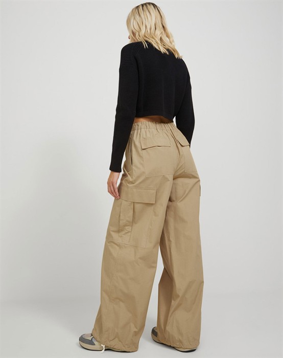 Cool og lækre cargo bukser fra JJXX. Bukserne har en behagelig løs pasform og elastik i livet, hvilket gør de er skønne at have på. De er med store lommer samt snøre i benene. Vælg selv om du vil bære dem med brede ben eller snøre dem ind.
